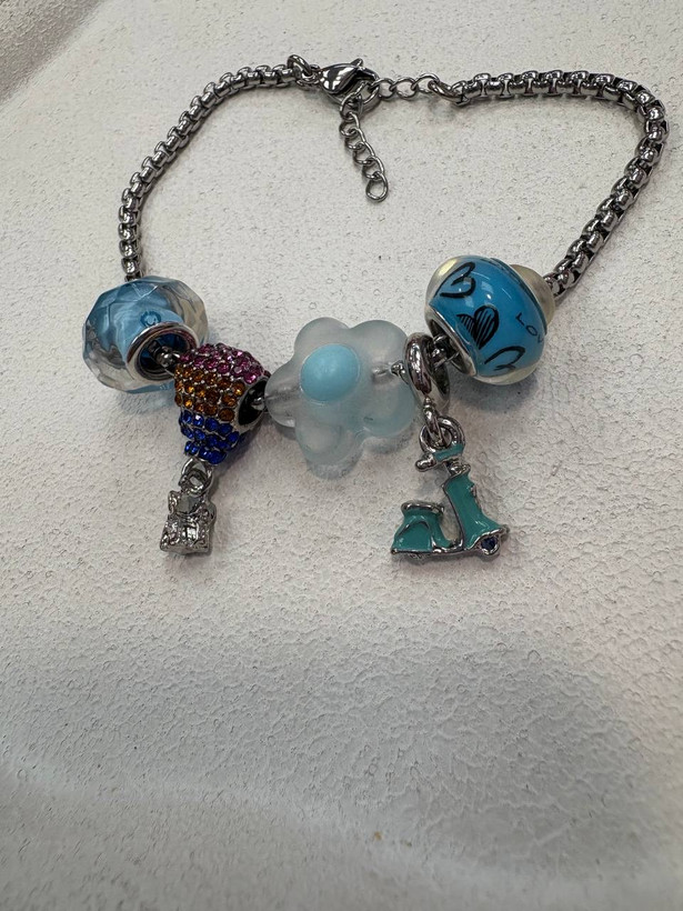 دستبند نقره ای رنگ ثابت اویز دار برند پاندورا
