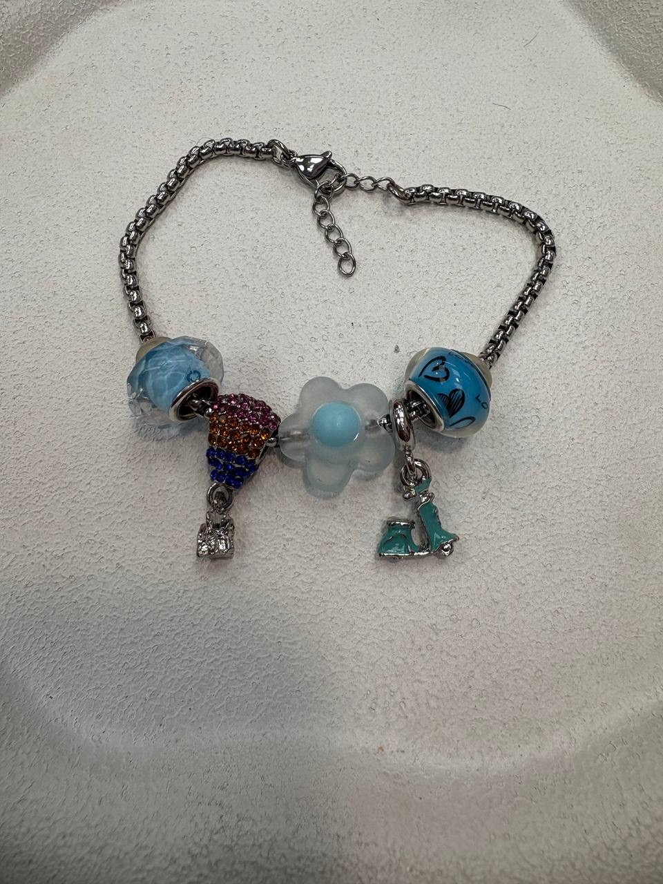 دستبند نقره ای رنگ ثابت اویز دار برند پاندورا