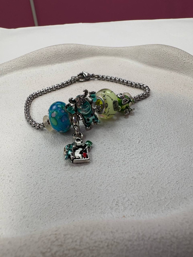 دستبند استیل نقره ای پاندورا آویز دار