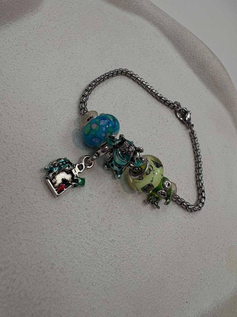 دستبند استیل نقره ای پاندورا آویز دار