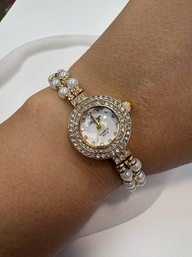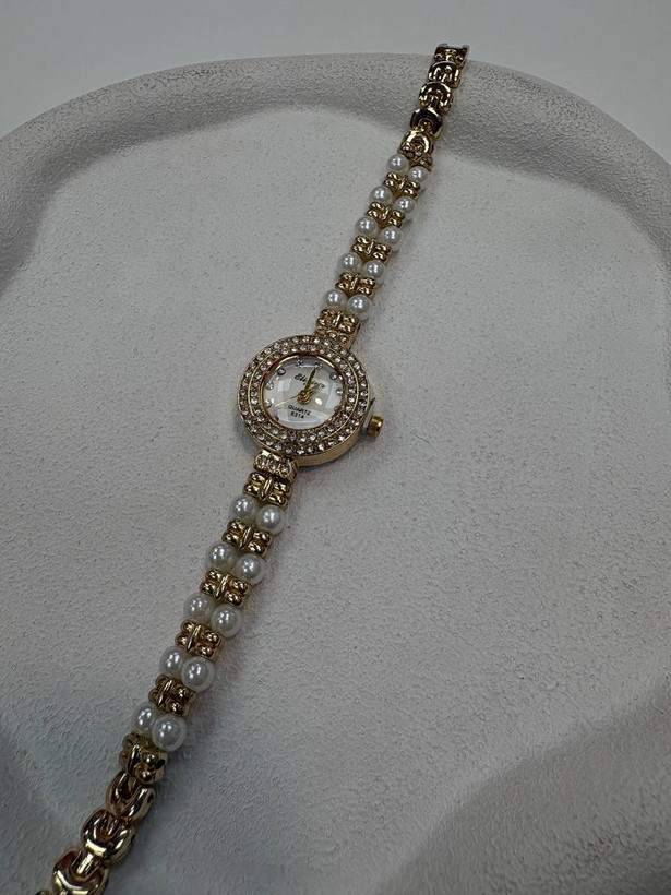 ساعت استیل طلایی مرواریدی