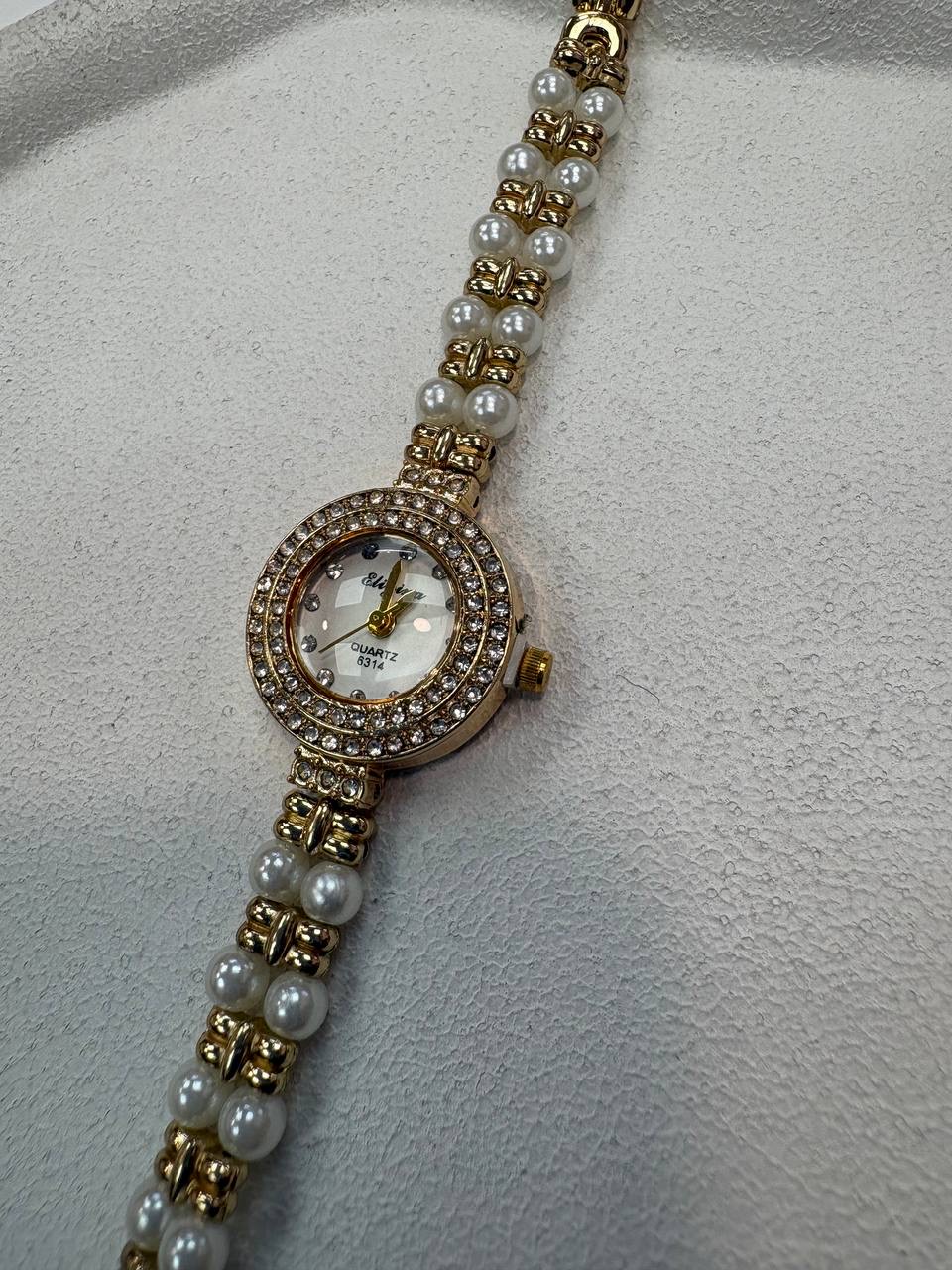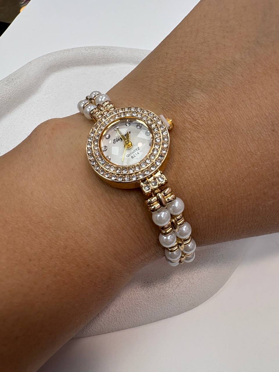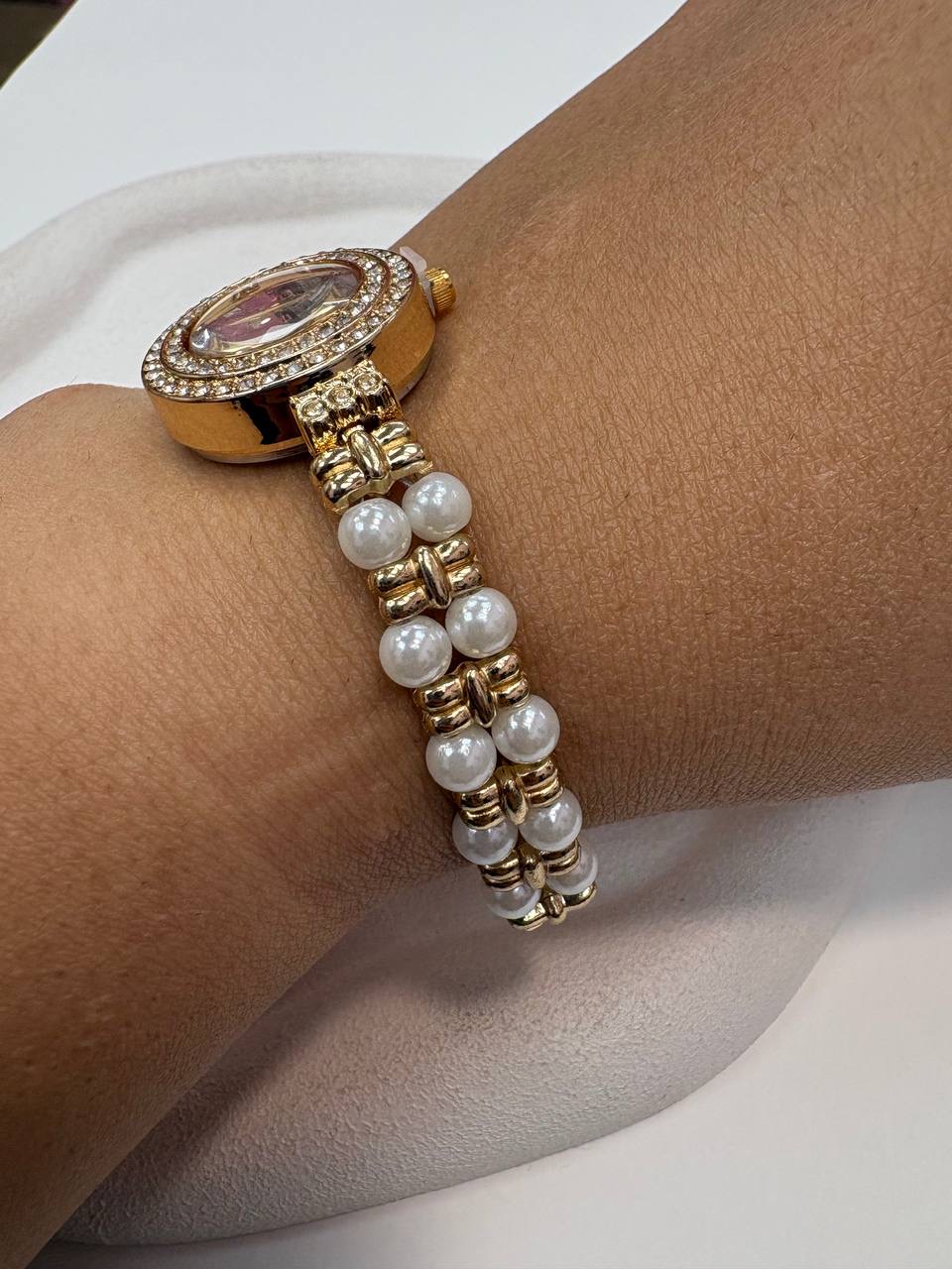 ساعت استیل طلایی مرواریدی