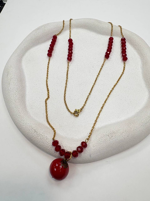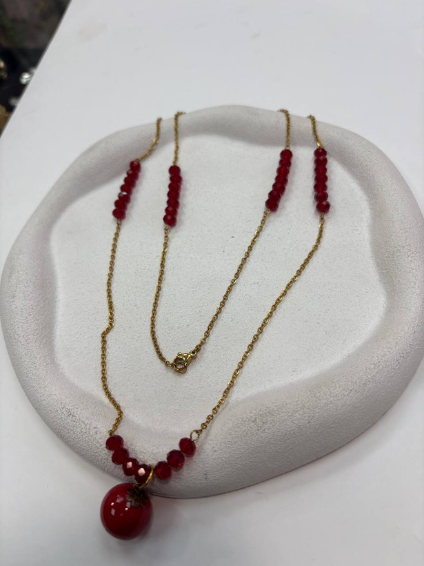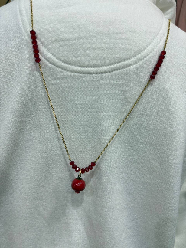 گردنبنداستیل یلدایی اویز انار و کریستال
