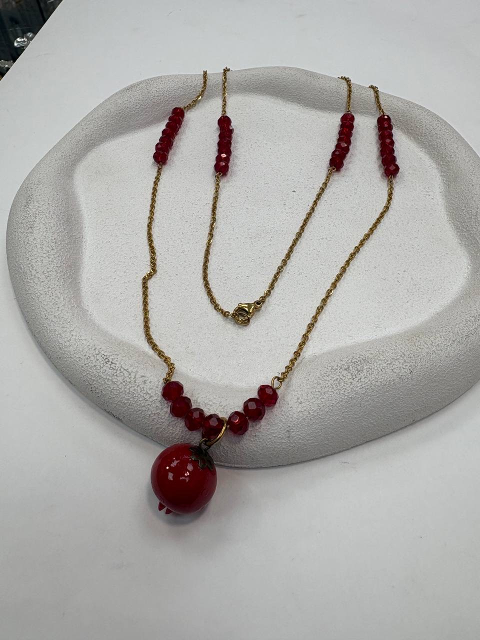 گردنبنداستیل یلدایی اویز انار و کریستال