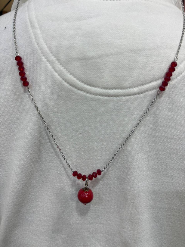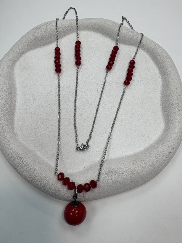 گردنبنداستیل یلدایی اویز انار و کریستال نقره ای