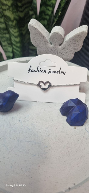 دستبند آسانسوری و پلاک قلب و پروانه استیل نقره ای