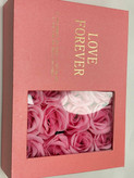 باکس کادویی گردنبند مروارید عشق بهمراه ۹ عدد گل رز فومی