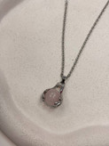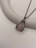 گردنبند استیل و آویز سنگ رُز کوارتز