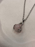 گردنبند استیل و آویزسنگ رُز کوارتز آغوش