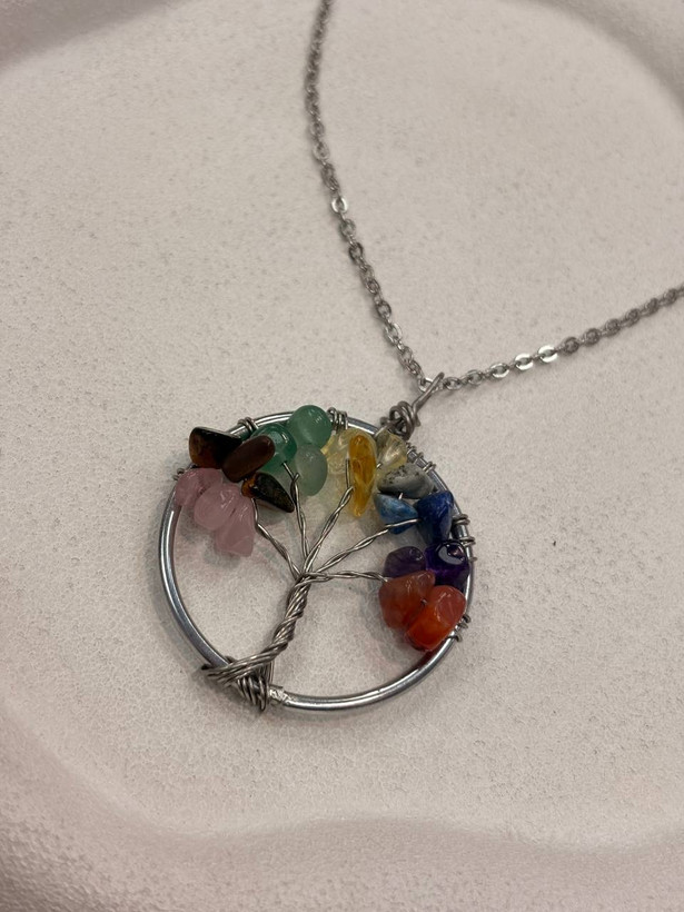 گردنبند استیل با آویز سنگ هفت چاکرا