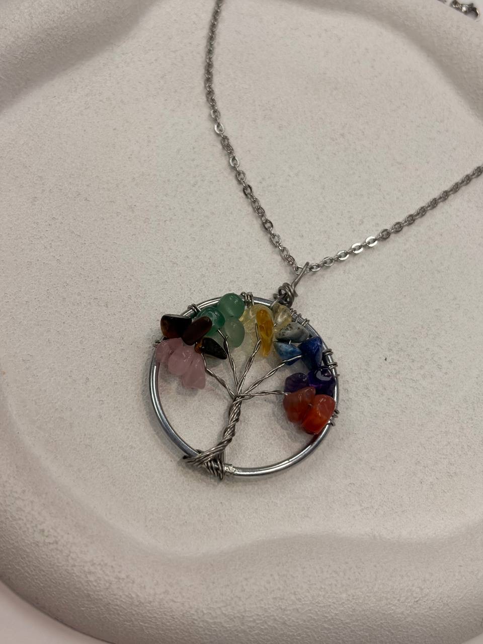 گردنبند استیل با آویز سنگ هفت چاکرا