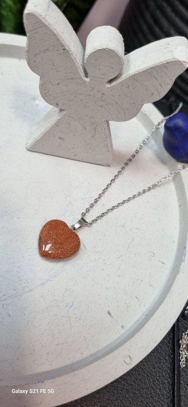 گردنبند استیل و پلاک سنگ قلب دلربا قهوه ای