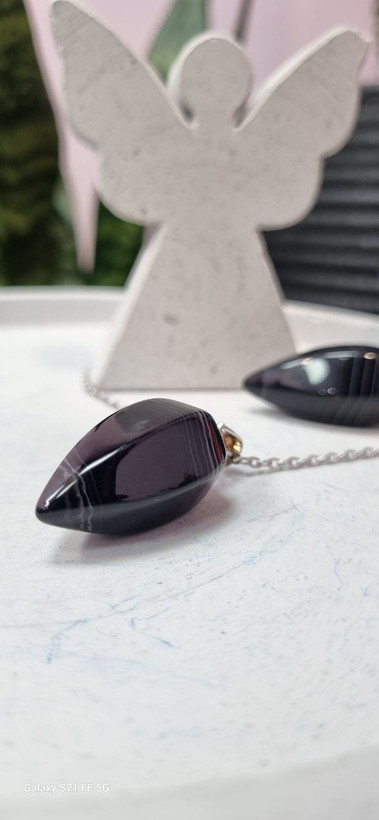 گردنبند استیل و سنگ منشور تورمالین سیاه