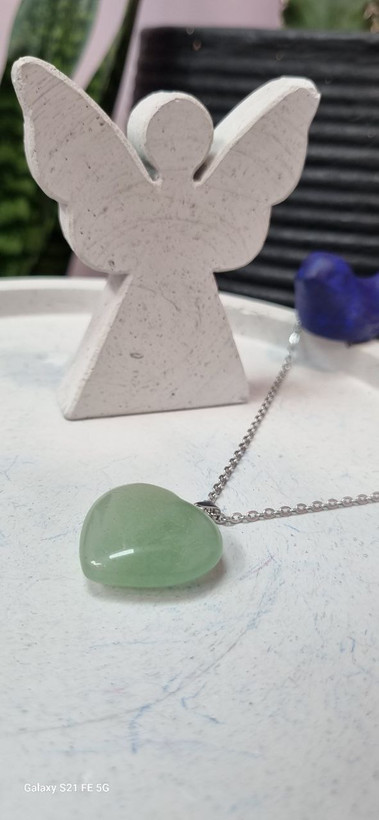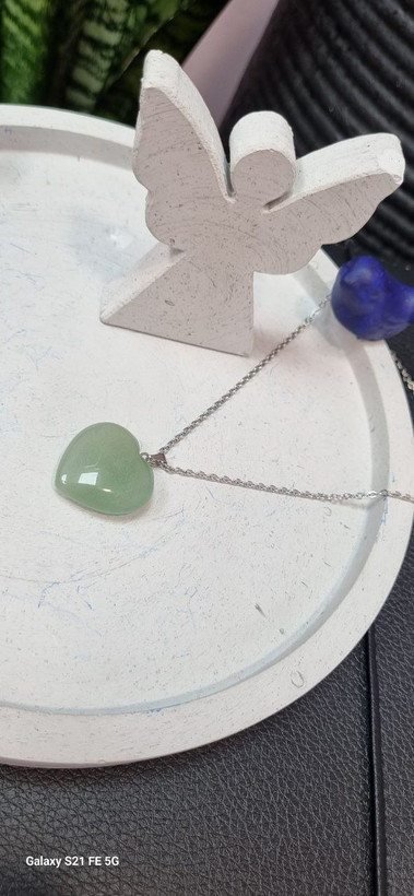 گردنبند استیل و سنگ قلب اونتورین سبز