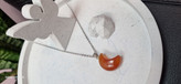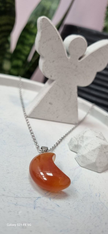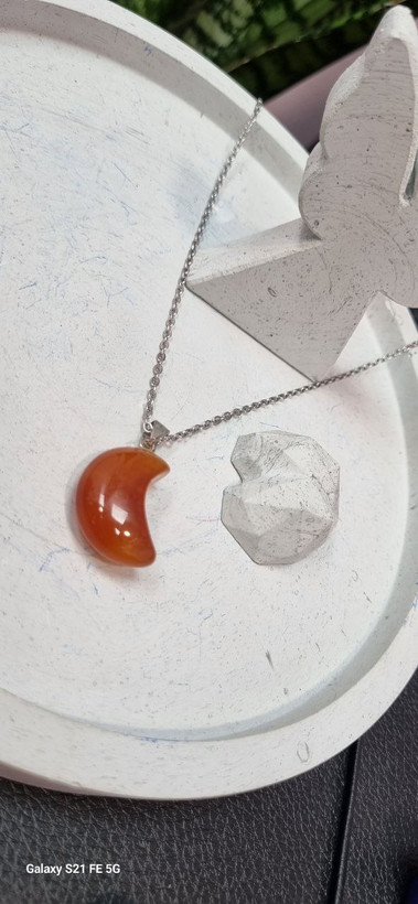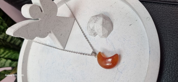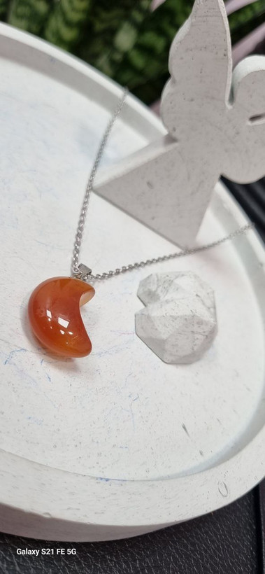 گردنبند استیل و اویز ماه سنگ عقیق قرمز کارنلین