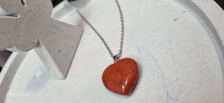 گردنبند استیل و سنگ قلب جاسپر قرمز