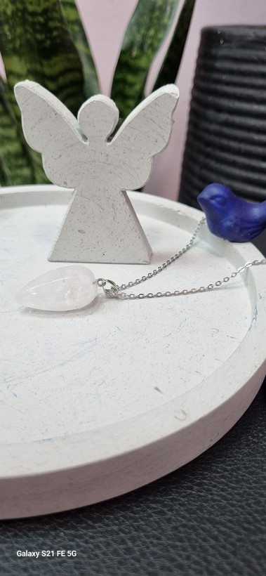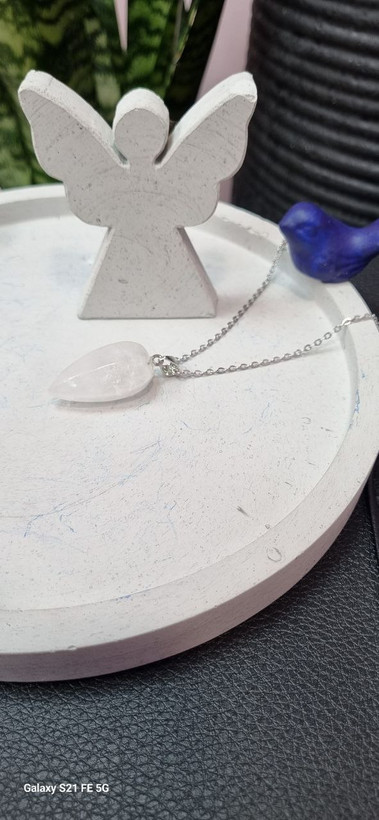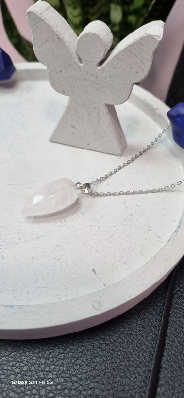 گردنبند استیل و آویز منشور سنگ رز کوارتز