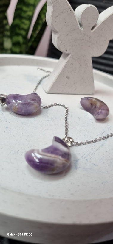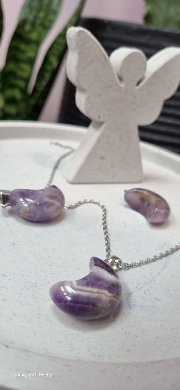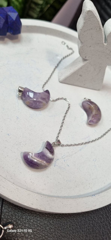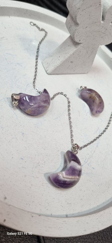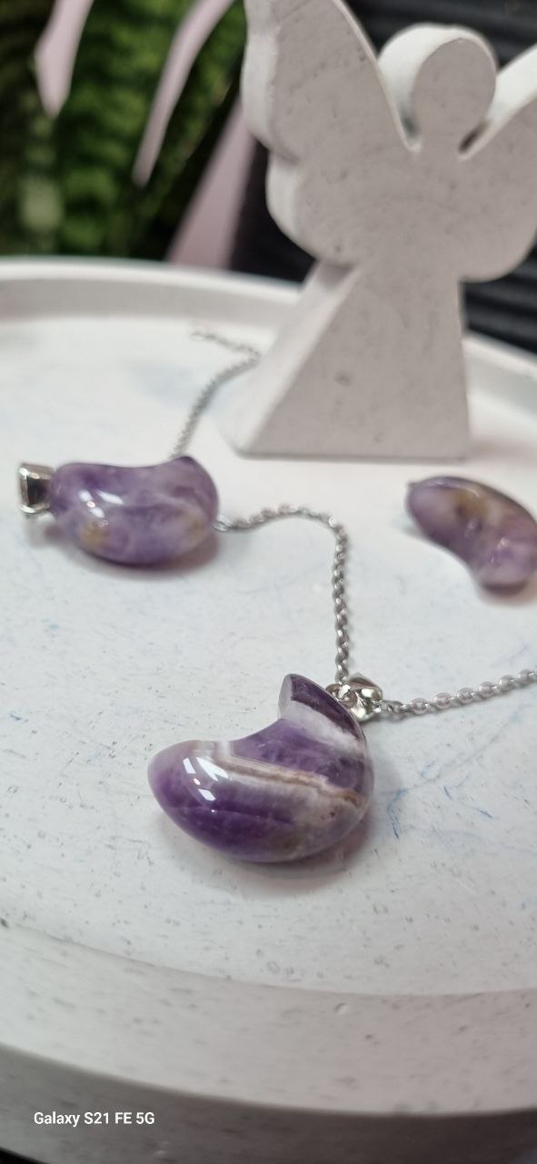 گردنبند سنگ آمیتیست با زنجیر استیل نقره ای رنگ ثابت بدون ایجاد حساسیت و تغییر رنگ