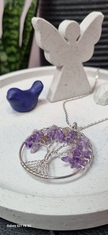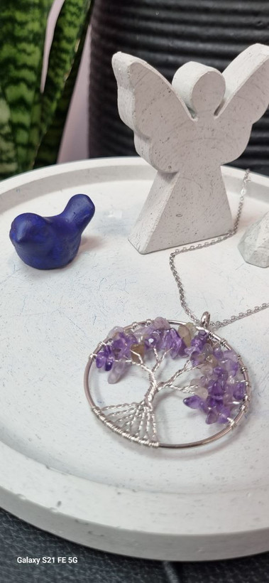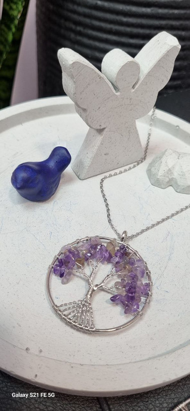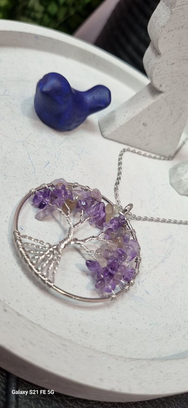 گردنبند استیل درخچه زندگی سنگ آمیتیست