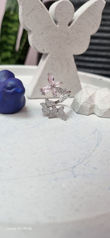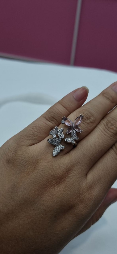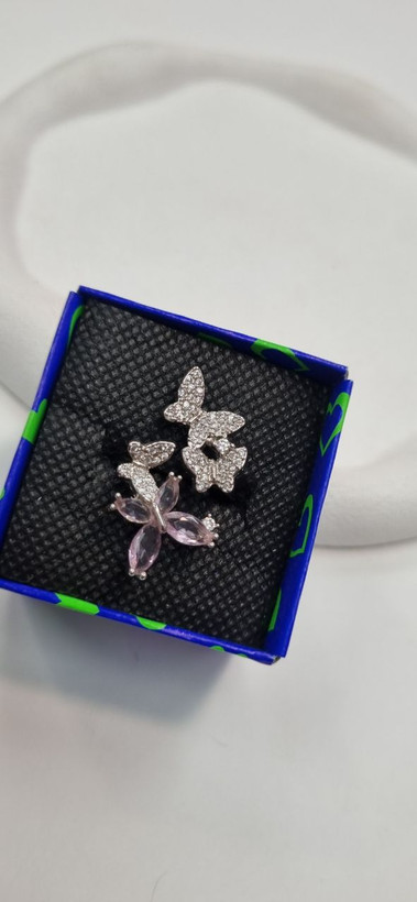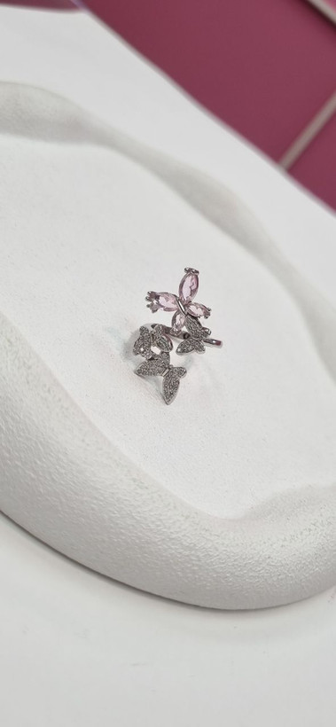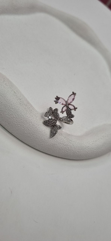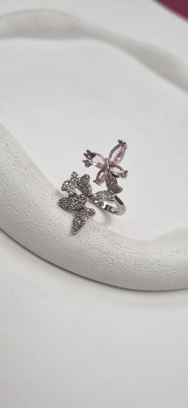 انگشتر استیل نقره ای پروانه نگین دار با ابکاری نقره و نگین های مخراجکاری شده درجه یک رنگ ثابت و بدون ایجاد حساسیت