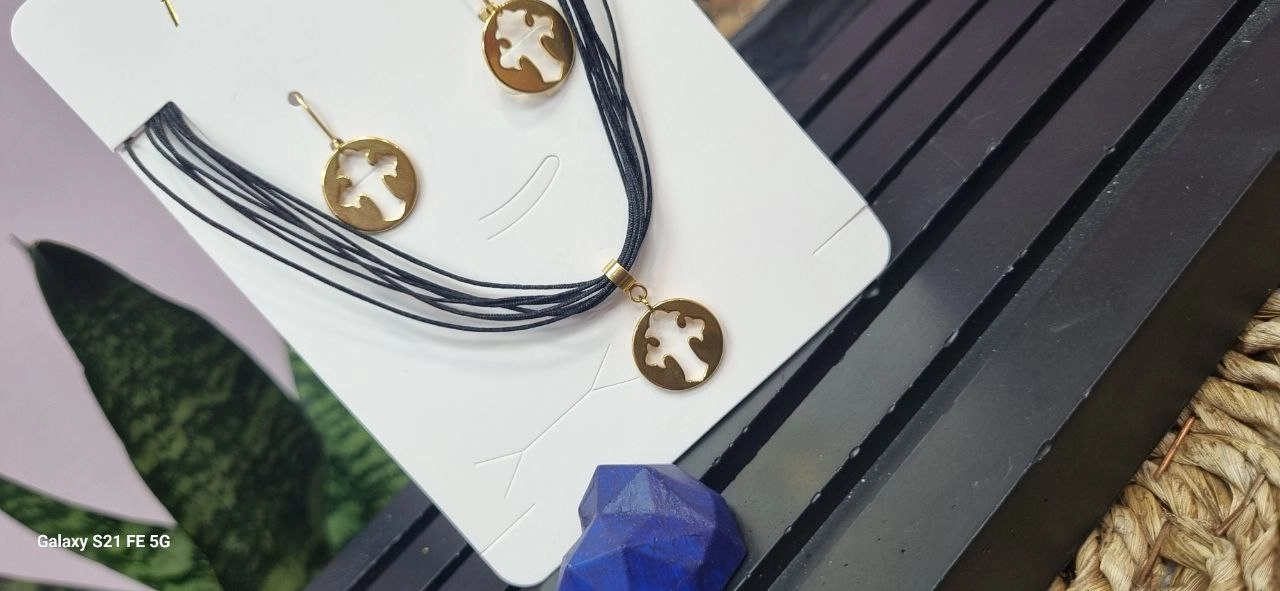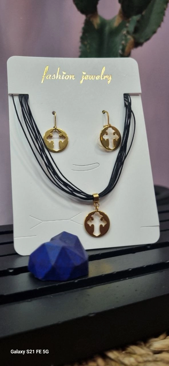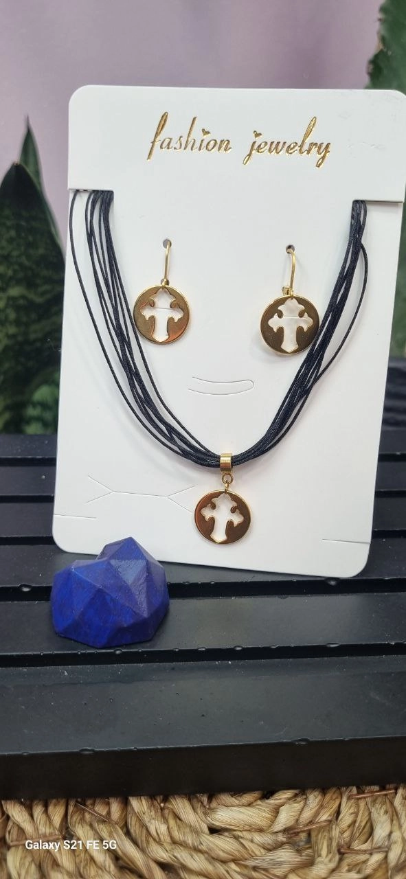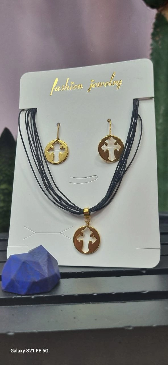 نیم ست استیل طلایی با پلاک صلیب رنگ ثابت بدون ایجاد حساسیت و تغییر رنگ