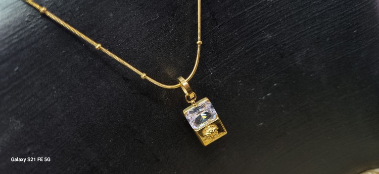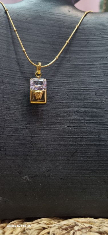 گردنبند استیل طلایی ورساچه نگین دار با زنجیر گوی دار ریز رنگ ثابت بدون ایجاد حساسیت و تغییر رنگ