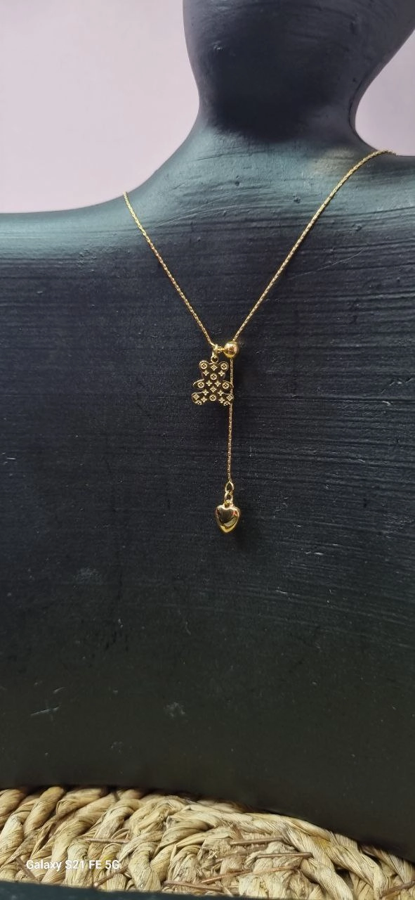 گردنبند استیل طلایی تدی لویی ویتون با اویز قلب رنگ ثابت بدون ایجاد حساسیت و تغییر رنگ