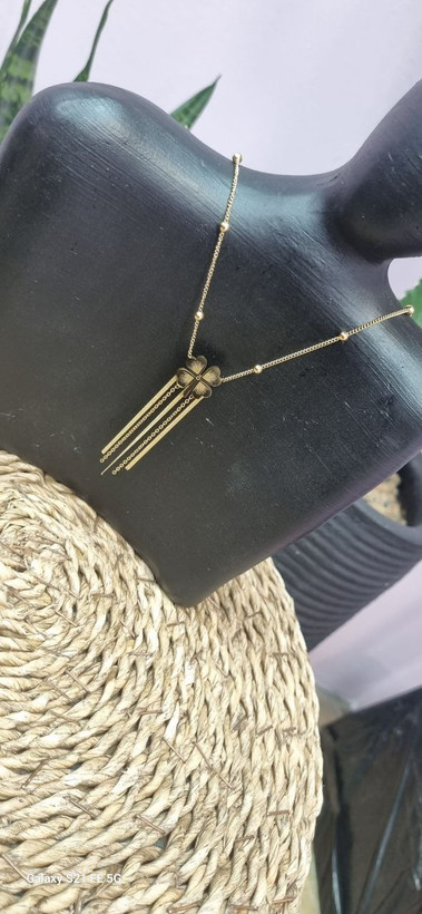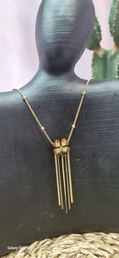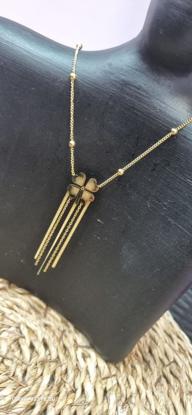گردنبند استیل طلایی شبدر آویزدار
