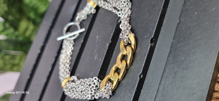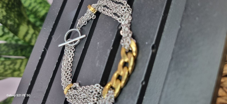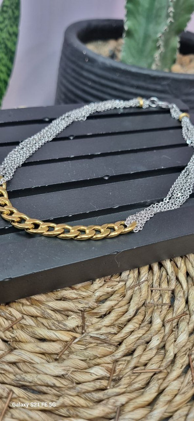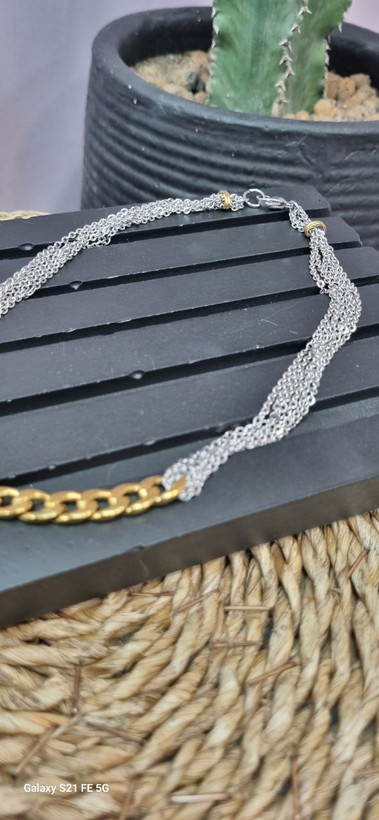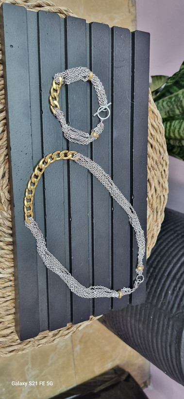 گردنبند و دستبند استیل طلایی و نقره ای ترکیبی کارتیر و زنجیر دیپلمات با قفل ملوانی رنگ ثابت بدون ایجاد حساسیت و تغییر رنگ