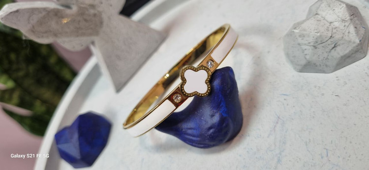 دستبند بنگل استیل ونکلیف سفید و طلایی
