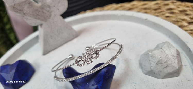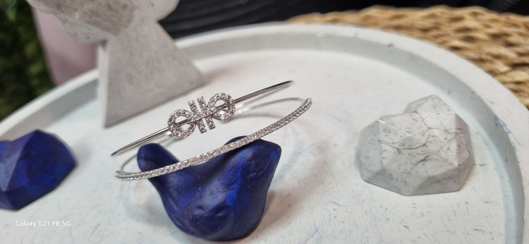 دستبند بنگل استیل نقره ای نگین دار فنری طرح جواهر