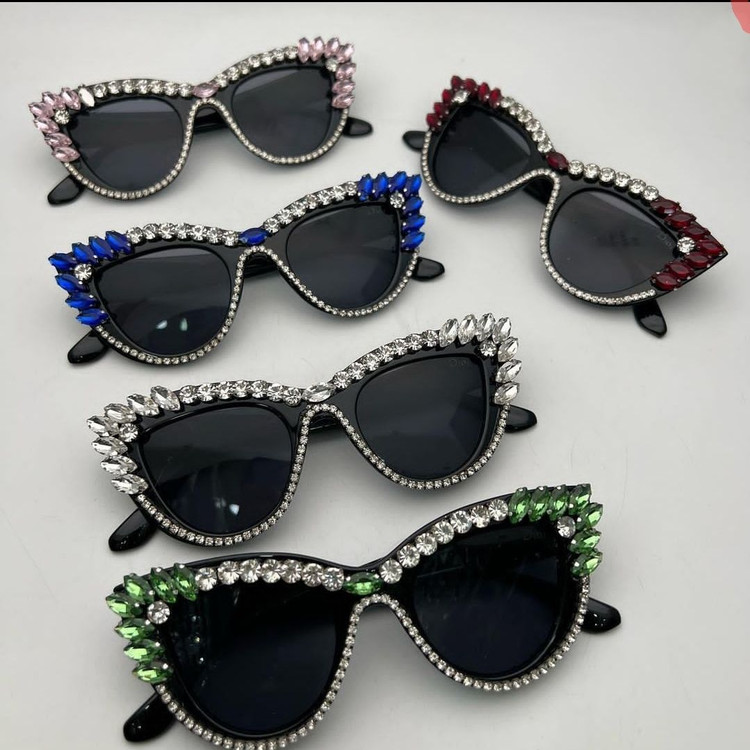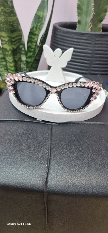 عینک فانتزی نگین دار مشکی صورتی