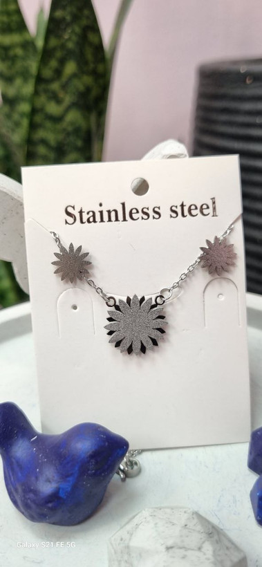 نیم ست استیل نقره ای گل چند پر سه بعدی