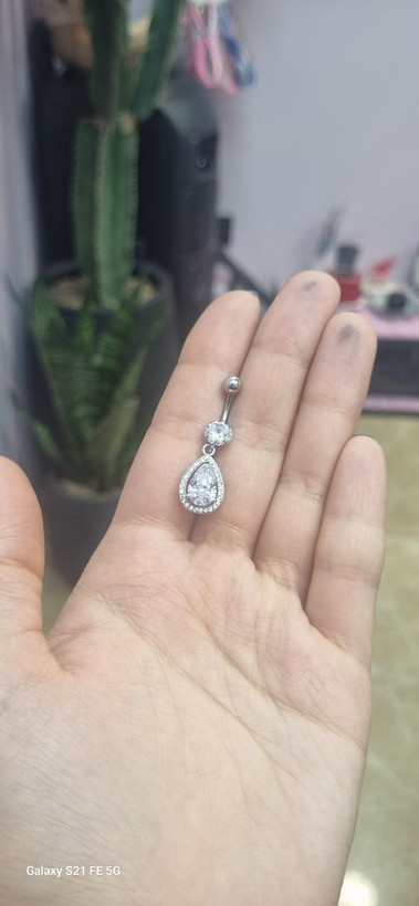 پرسینگ ناف تک نگین و آویز اشک آبکاری نقره