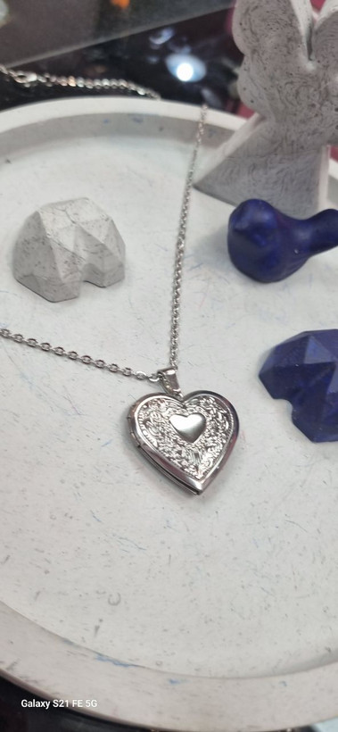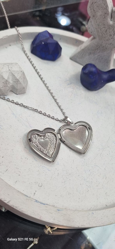 گردنبند استیل نقره ای لاکت قلبی جای گذاشتن عکس
