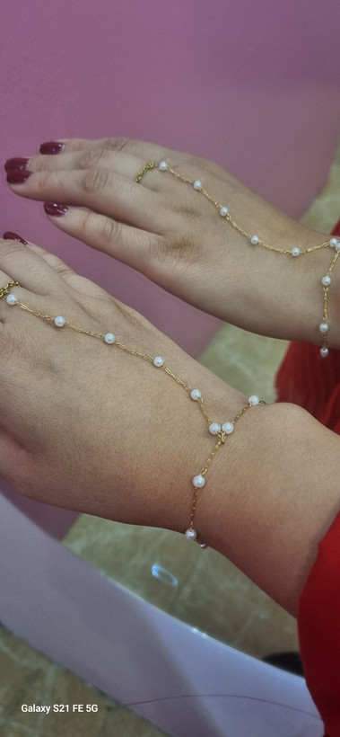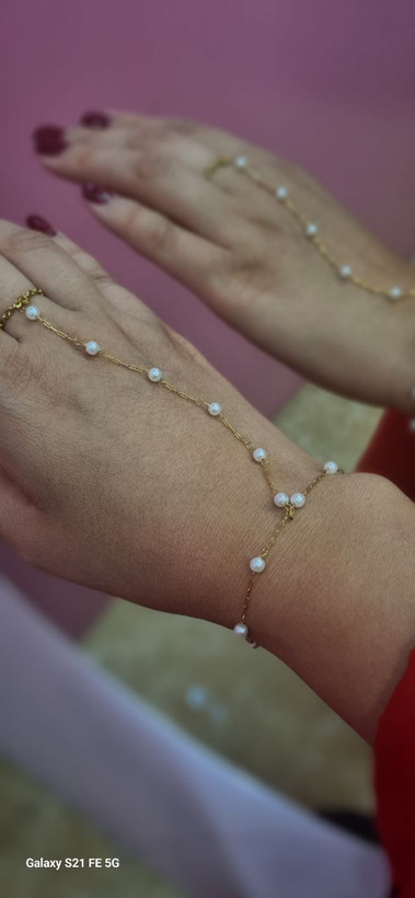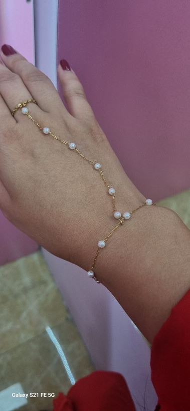 تمیمه دستبند طلایی مروارید استیل