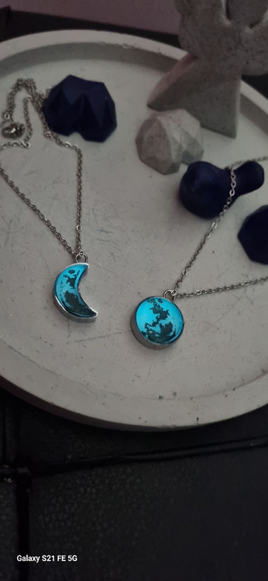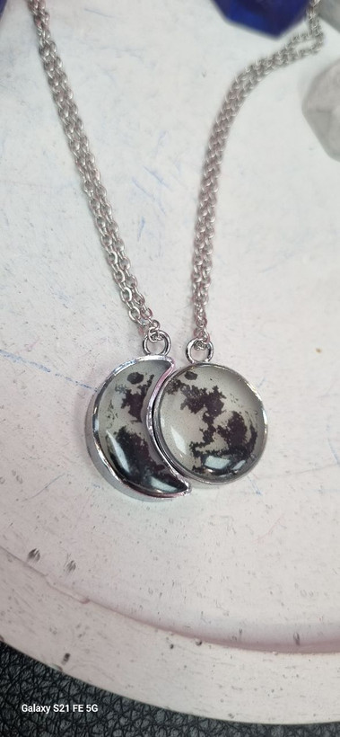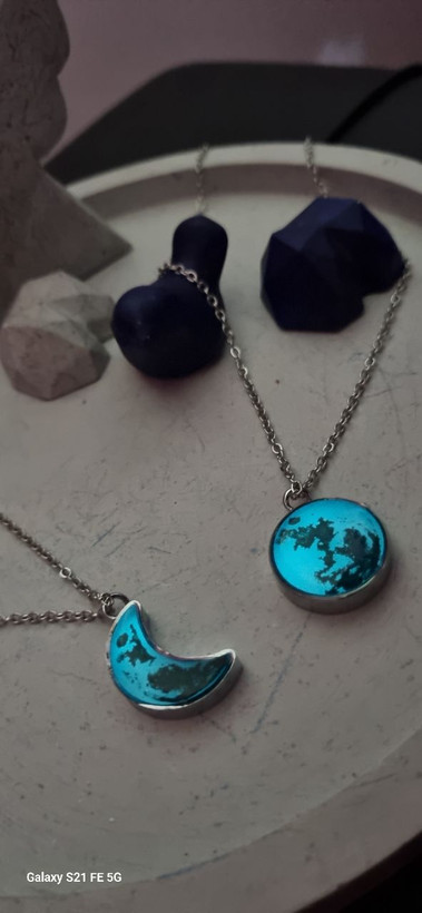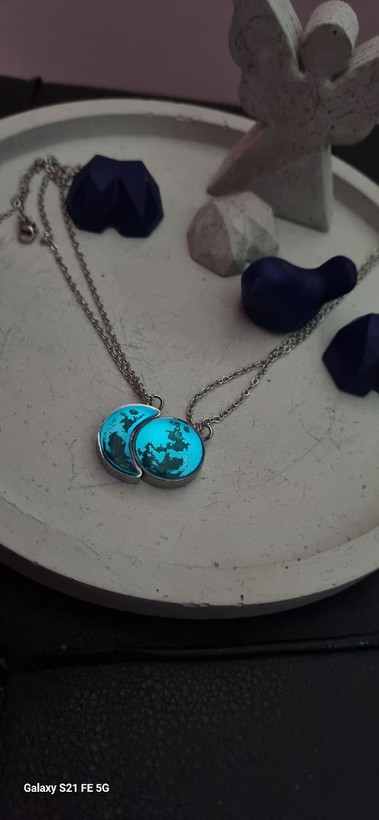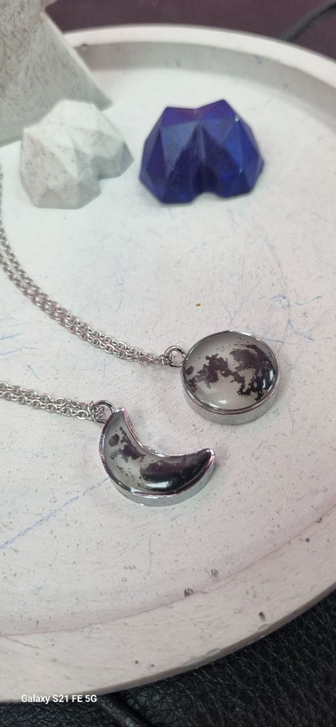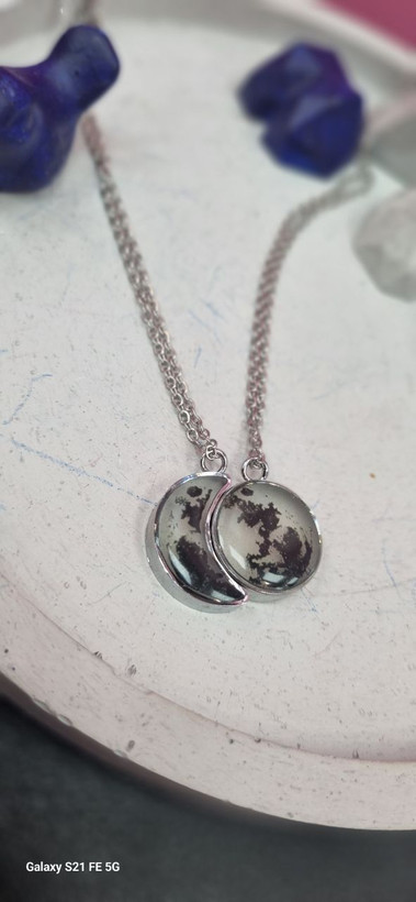 گردنبند ست استیل نقره ای شبتاب ماه و هلال ماه