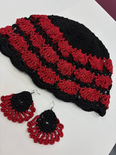 ست کلاه و گوشواره بافت نخ ترک یلدایی